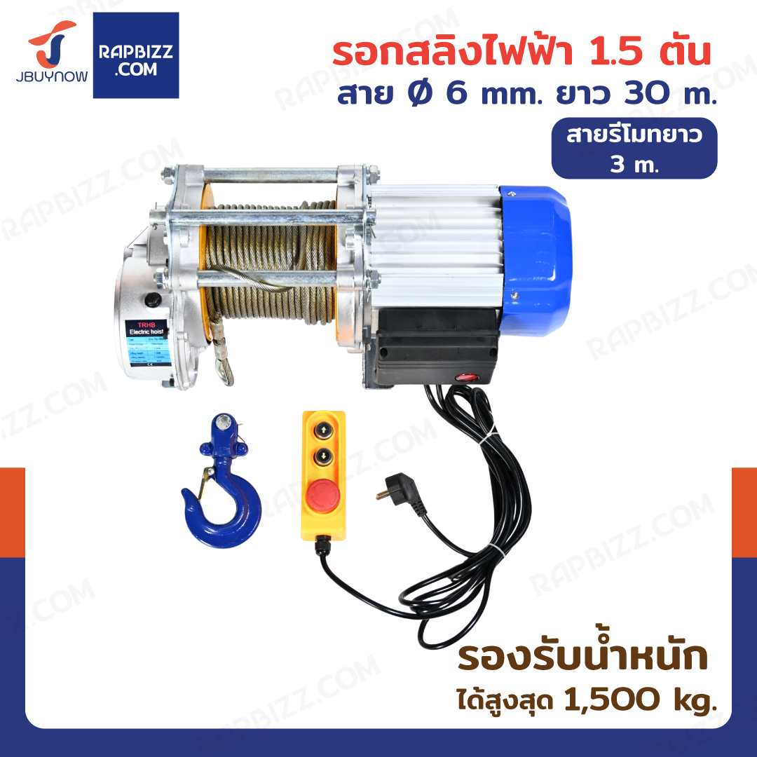 กว้าน รอกไฟฟ้า รอกสลิงไฟฟ้า รุ่นงานหนัก 1.5 ตัน มอเตอร์ 3.0KW สลิง 7mm/30m สายรีโมท 3M