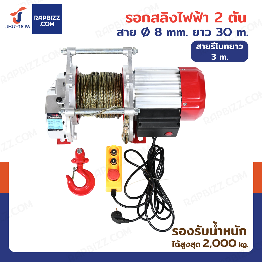 กว้าน รอกไฟฟ้า รอกสลิงไฟฟ้า รุ่นงานหนัก 2ตัน มอเตอร์ 4.0KW สลิง 8mm/30m สายรีโมท 3M