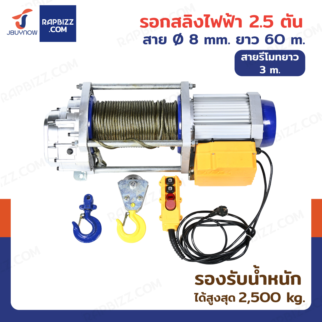 กว้าน รอกไฟฟ้า รอกสลิงไฟฟ้า รุ่นงานหนัก 2.5 ตัน มอเตอร์ 5.0KW สลิง 8mm/60m สายรีโมท 3M
