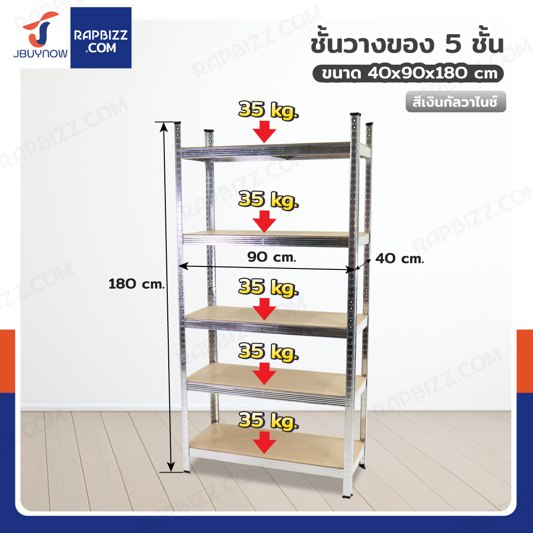 ชั้นวางของ 5 ชั้น 175 กก. 40x90x180 ซม. สีเงินกัลวาไนซ์