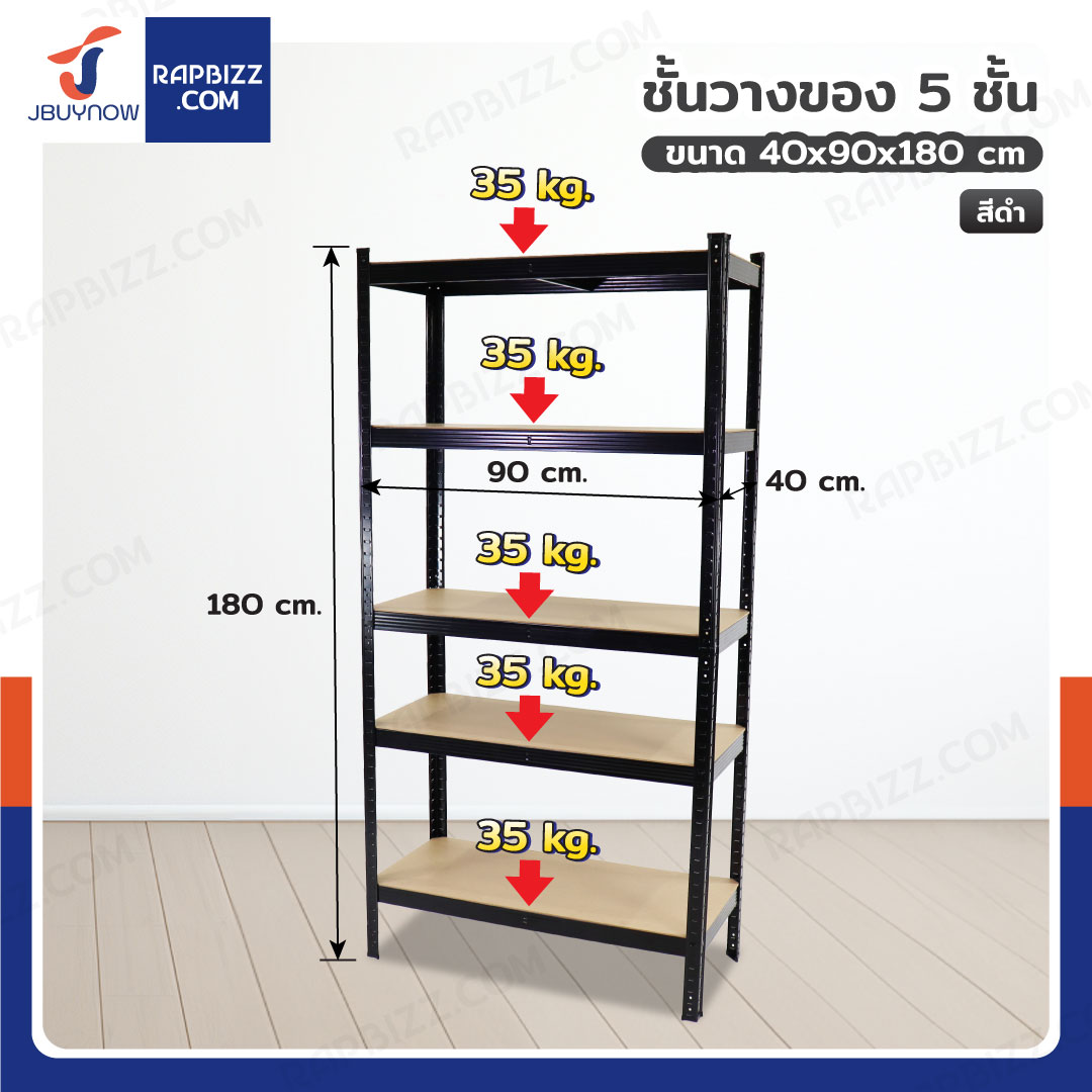 ชั้นวางของ 5 ชั้น 175 กก. 40x90x180 ซม.สีดำ