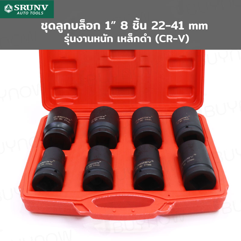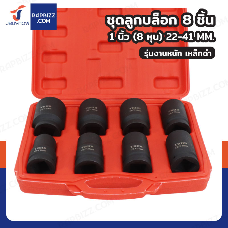 ชุดลูกบล็อก บล็อกดำ 1 นิ้ว 8 ชิ้น 22-41MM งานหนัก เหล็ก CR-V JBUYNOW SRUNV Zx-TZGJ010