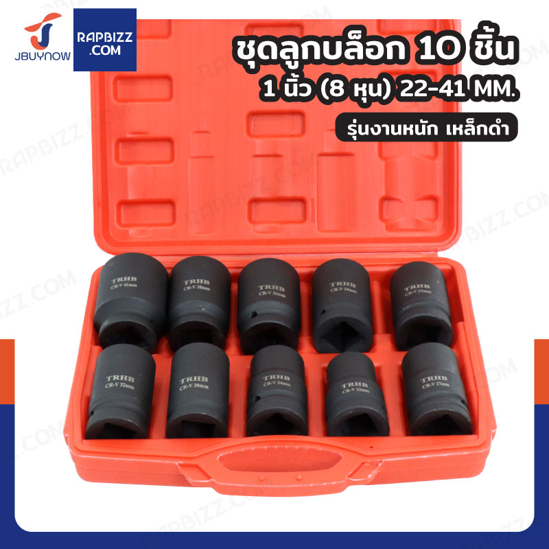 ชุดลูกบล็อก 10 ชิ้น 1 นิ้ว ( 8 หุน) 22-41 MM งานหนัก เหล็ก ดำ
