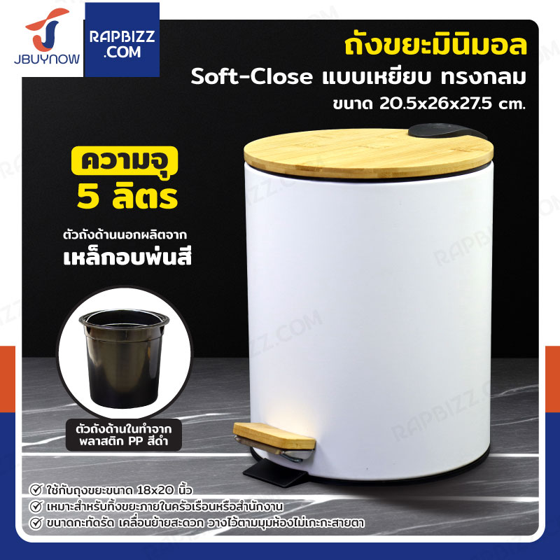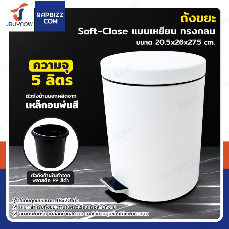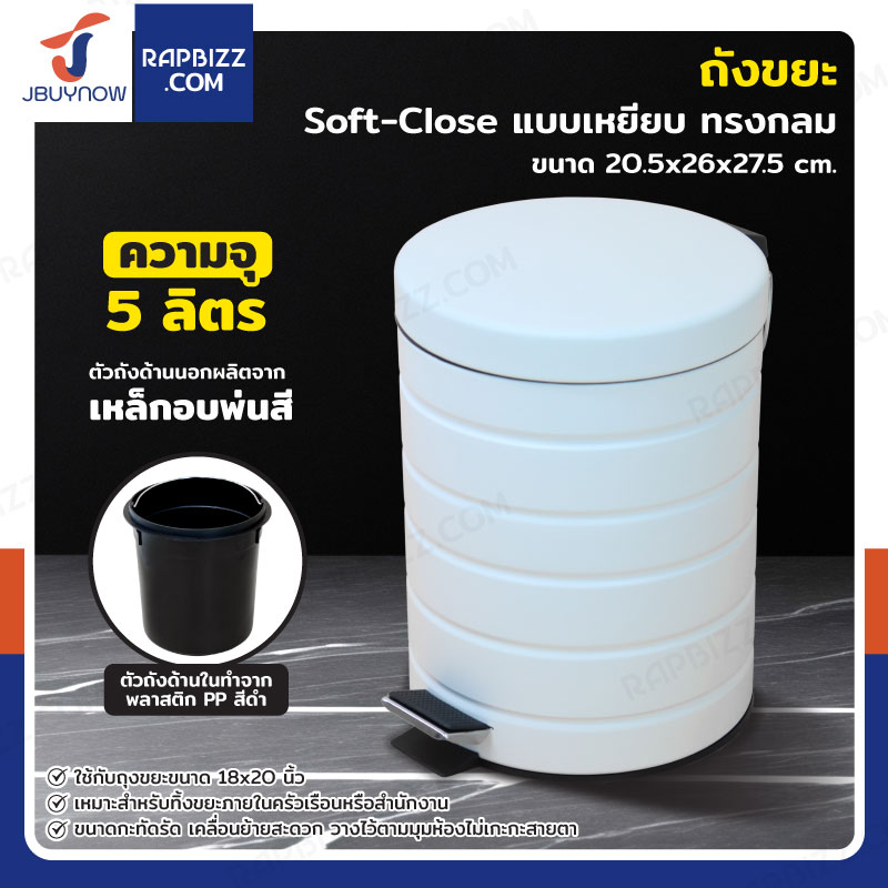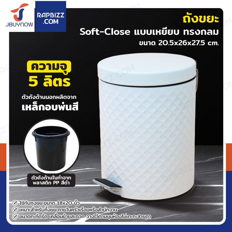 ถังขยะ แบบเหยียบ ทรงกลม 5 ลิตร 20.5x26x27.5 cm สีขาว
