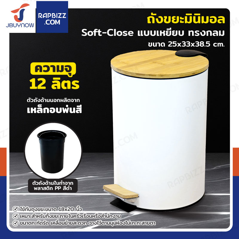 ถังขยะมินิมอล แบบเหยียบ ทรงกลม 12 ลิตร 25x33x38.5 cm