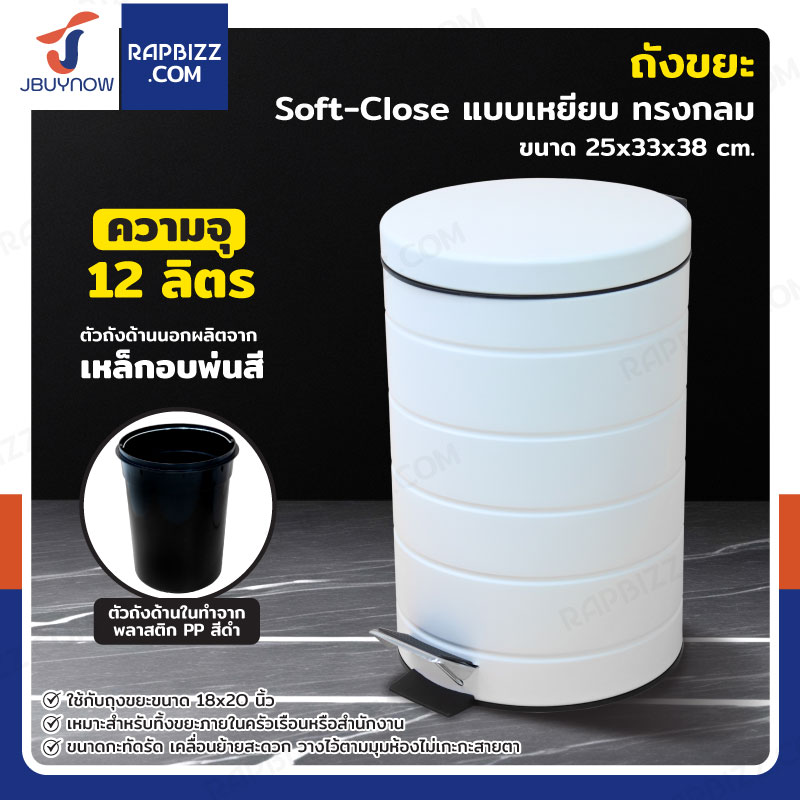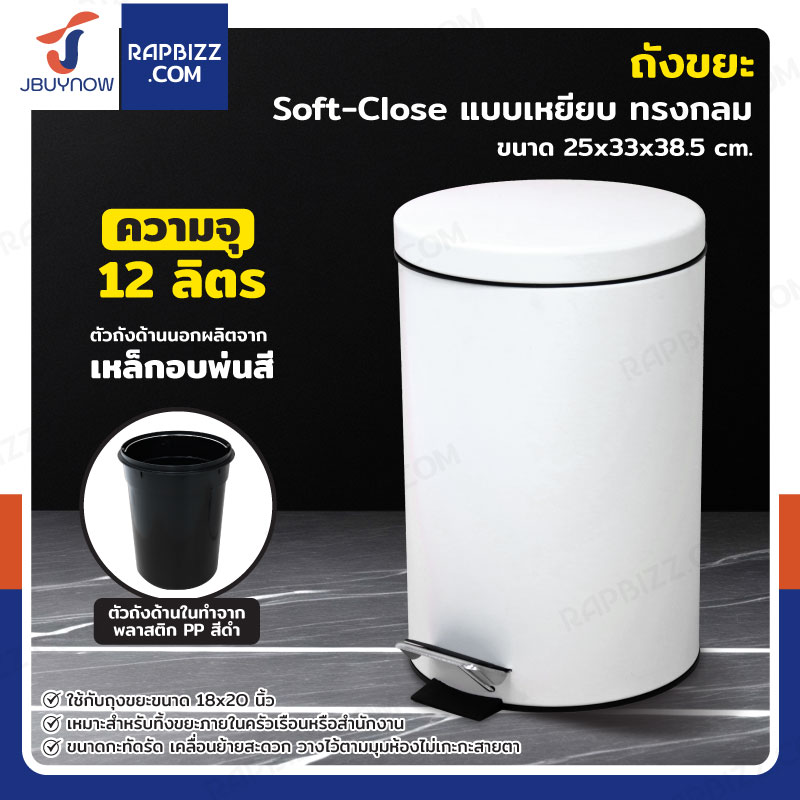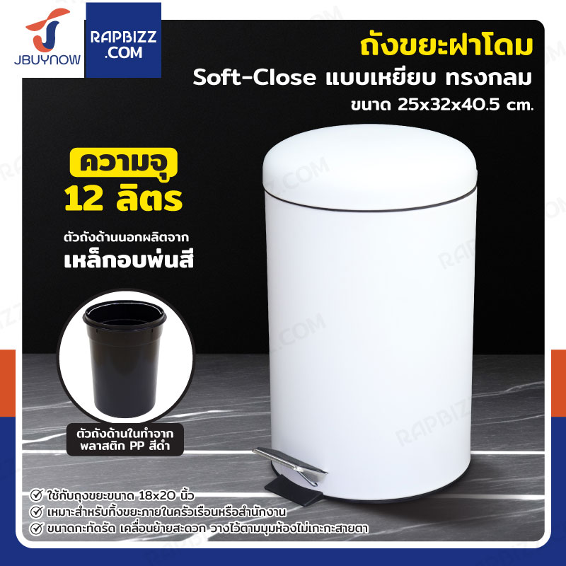 ถังขยะ แบบเหยียบ ทรงกลม 12 ลิตร 25x33x38 cm สีขาว
