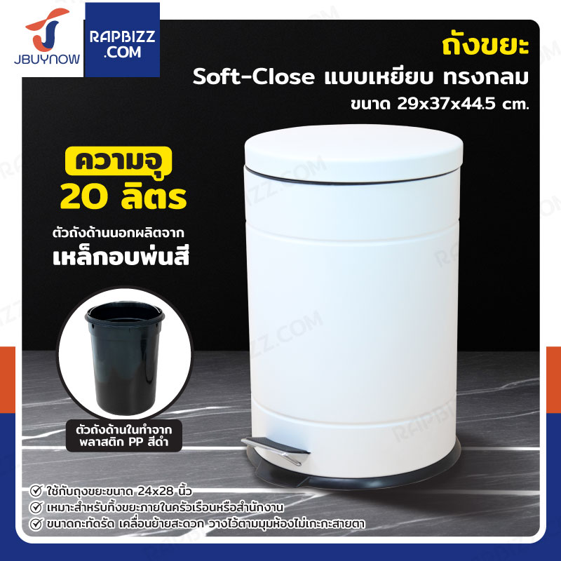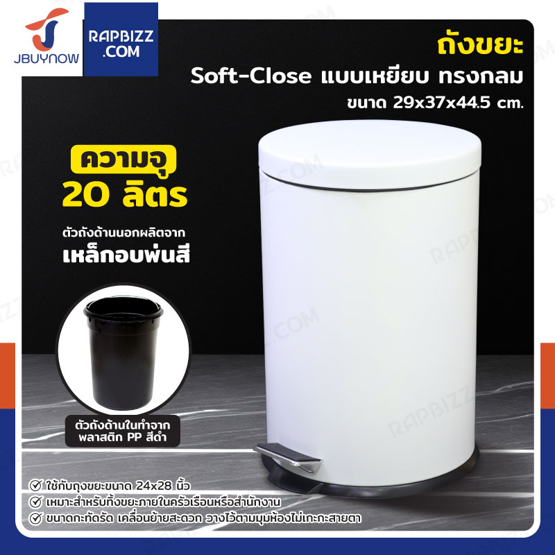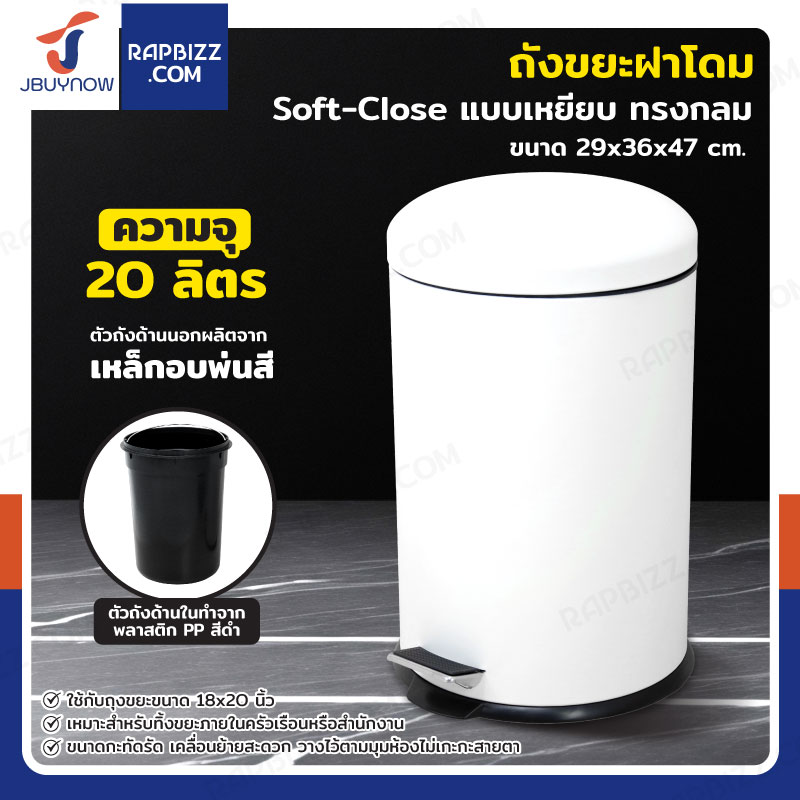 ถังขยะ แบบเหยียบ ทรงกลม 20 ลิตร 29x37x44.5 cm สีขาว