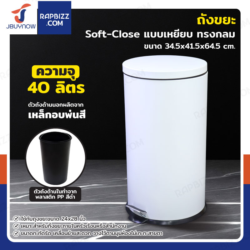 ถังขยะ แบบเหยียบ ทรงกลม 40 ลิตร 34.5x41.5x64.5 cm สีขาว
