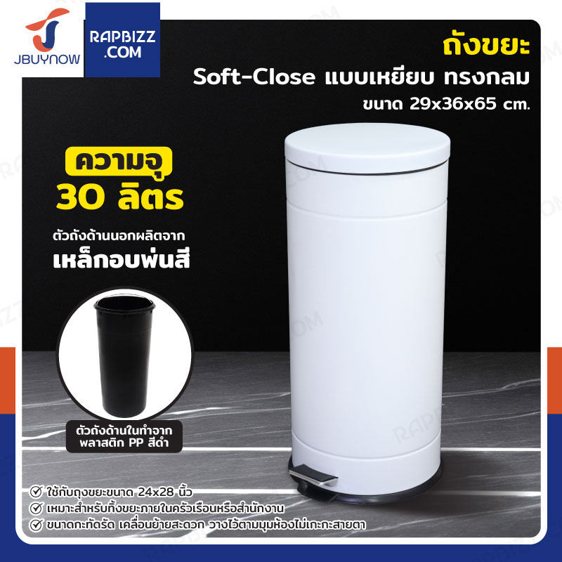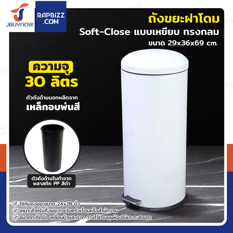 ถังขยะ แบบเหยียบ ทรงกลม 30 ลิตร 29x36x65 cm สีขาว