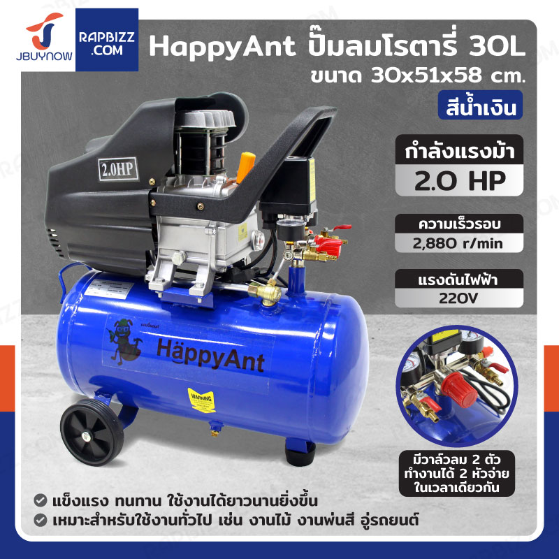 HAPPYANT ปั๊มลมโรตารี่ 30 ลิตร 2แรงม้า สีน้ำเงิน
