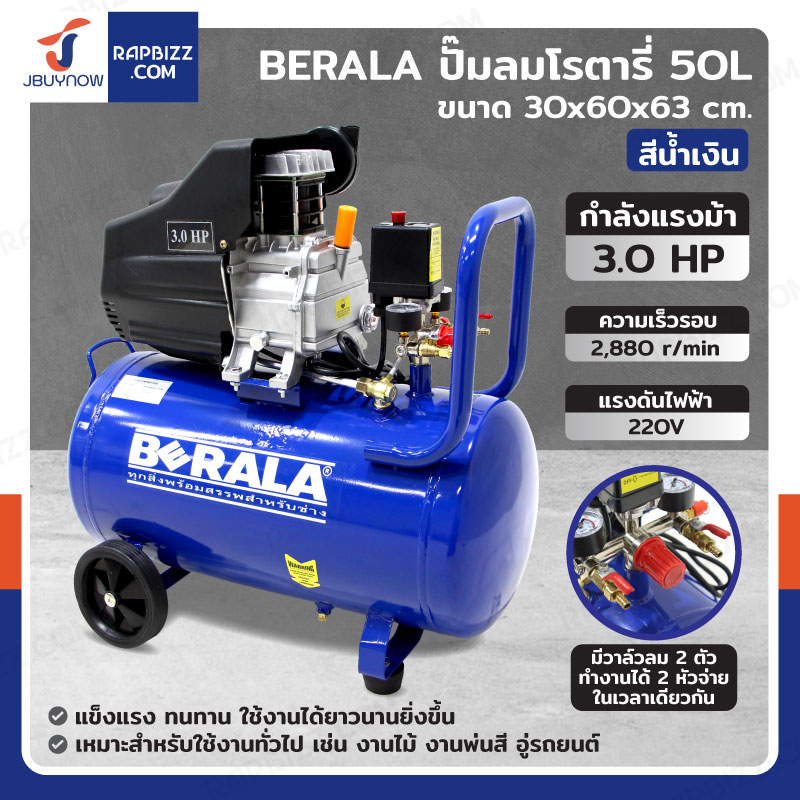 BERALA ปั๊มลมโรตารี่ 50 ลิตร 3แรงม้า สีน้ำเงิน
