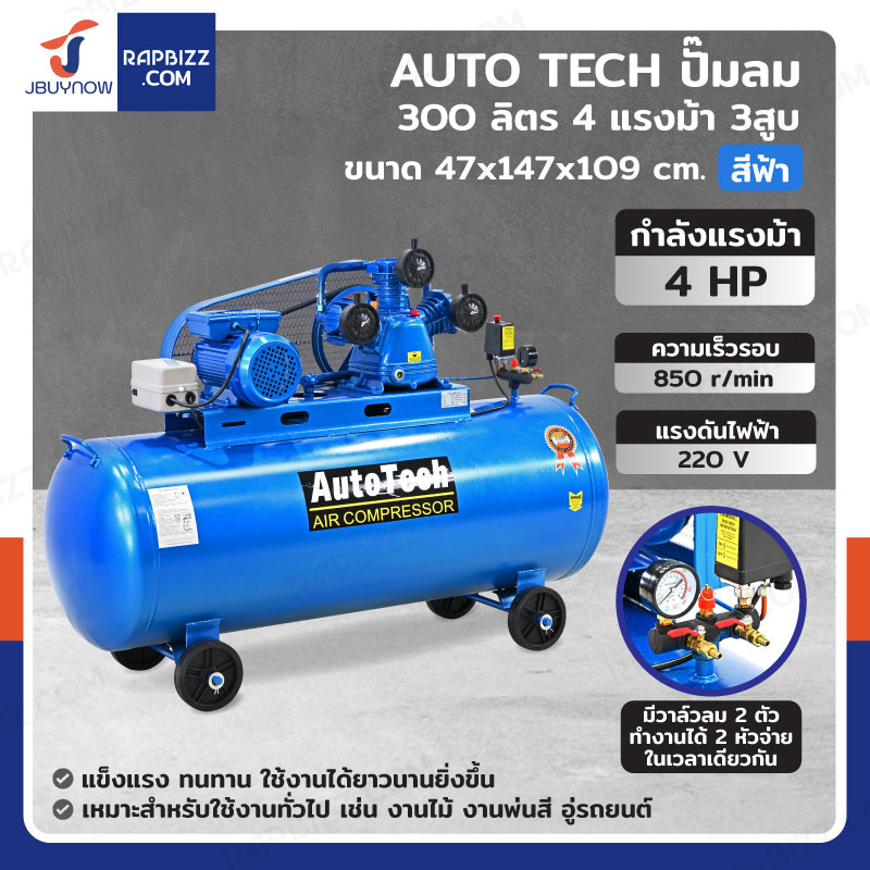 AUTO TECH ปั๊มลม 300 ลิตร 4แรงม้า 3สูบ สีฟ้า