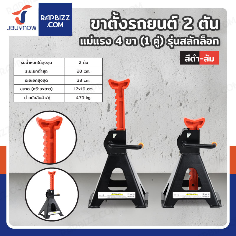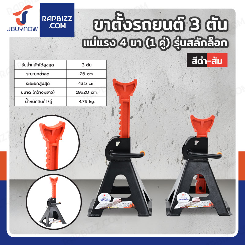 Hongma ขาตั้งรถยนต์ 3 ตัน แม่แรง 4 ขา (1 คู่) รุ่นสลักล็อค สีดำ-ส้ม