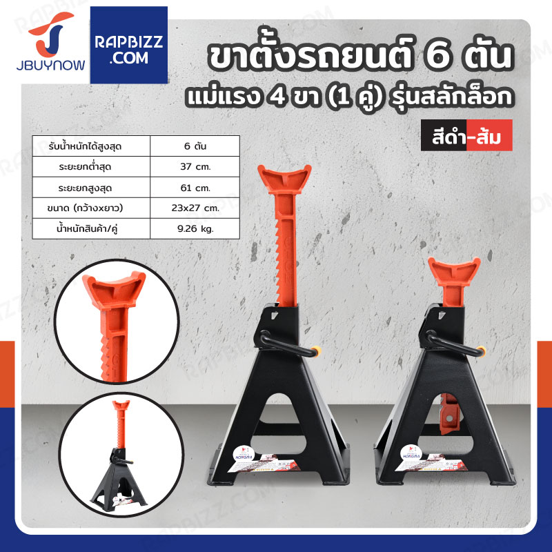 Hongma ขาตั้งรถยนต์ 6 ตัน แม่แรง 4 ขา (1 คู่) รุ่นสลักล็อค สีดำ-ส้ม