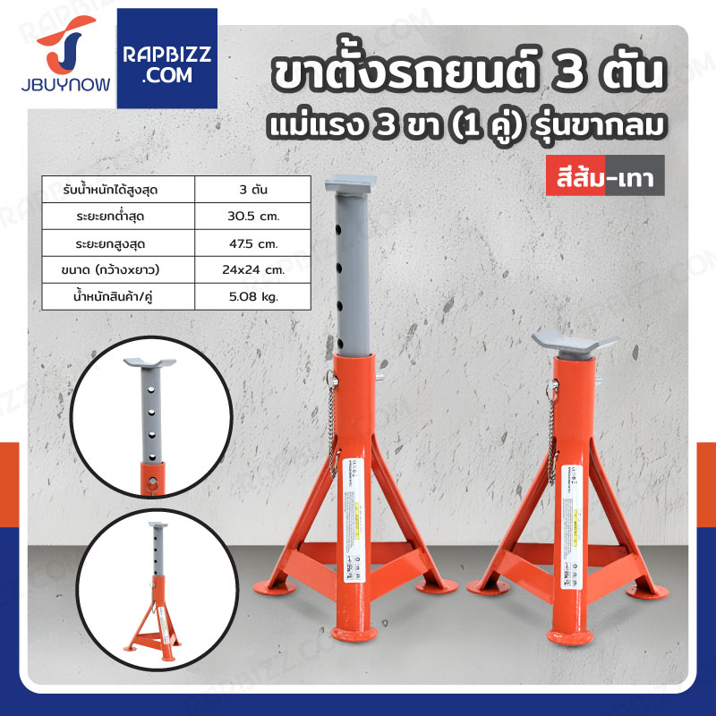 Hongma ขาตั้งรถยนต์ 3 ตัน แม่แรง 3 ขา (1 คู่) รุ่น ขากลม สีส้ม-เทา