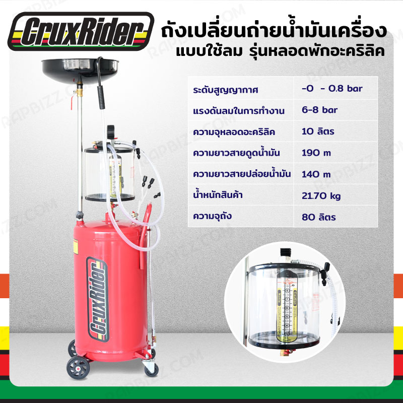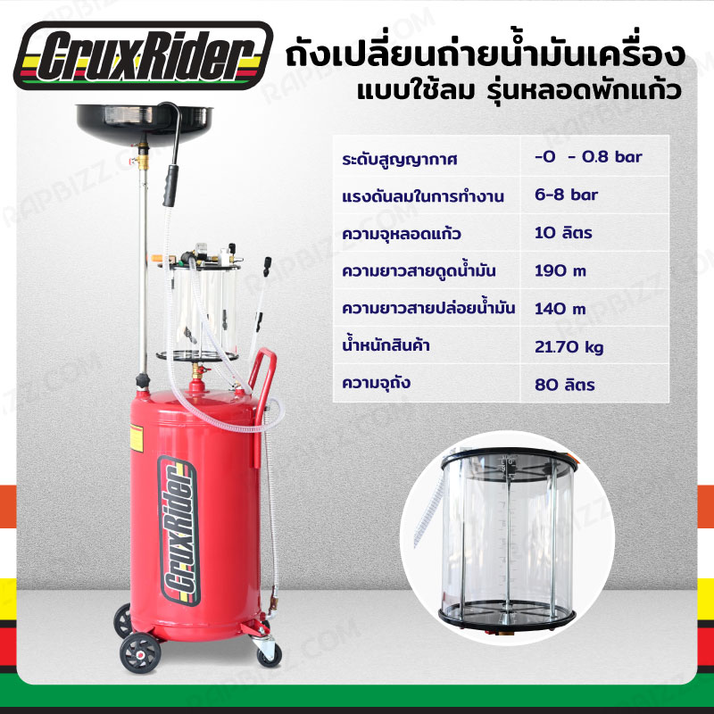 CRUX RIDER ถังเปลี่ยนถ่ายน้ำมันเครื่อง 80 ลิตร แบบใช้ลม รุ่นหลอดพักอะคริลิค