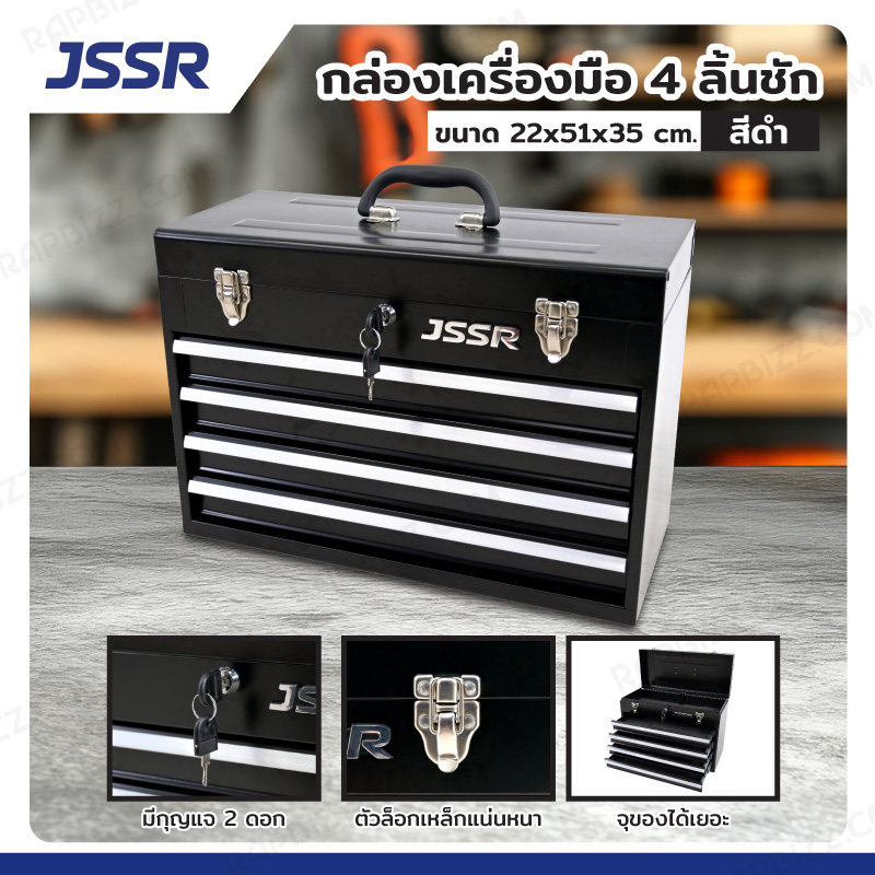 JSSR กล่องเครื่องมือ 20 นิ้ว รุ่น 4 ลิ้นชัก เปิดบนได้ 22x51x35 cm สีดำ TB010