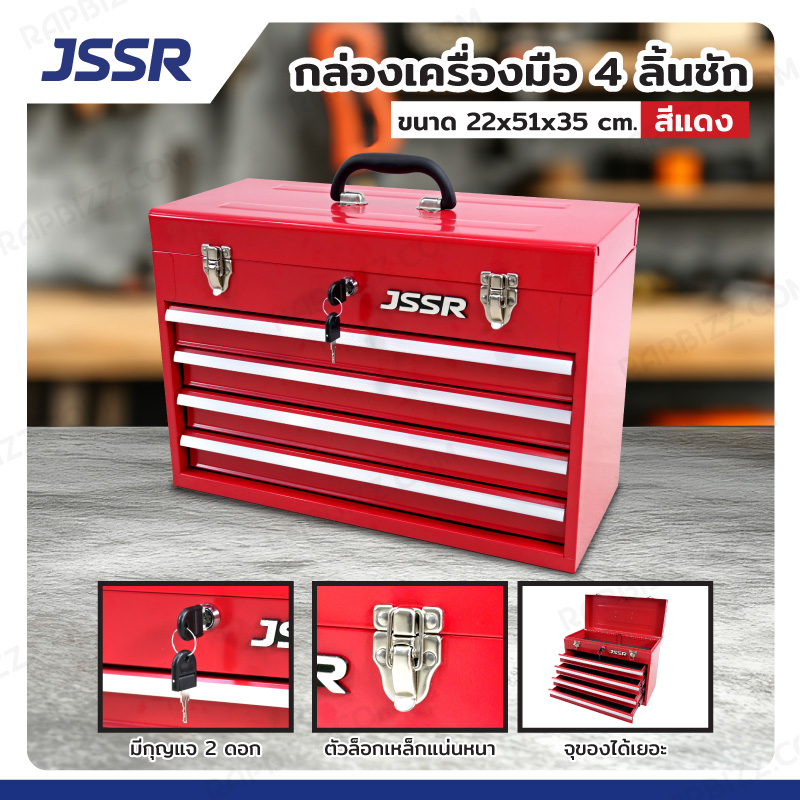 JSSR กล่องเครื่องมือ 20 นิ้ว รุ่น 4 ลิ้นชัก เปิดบนได้ 22x51x35 cm สีแดง TB011