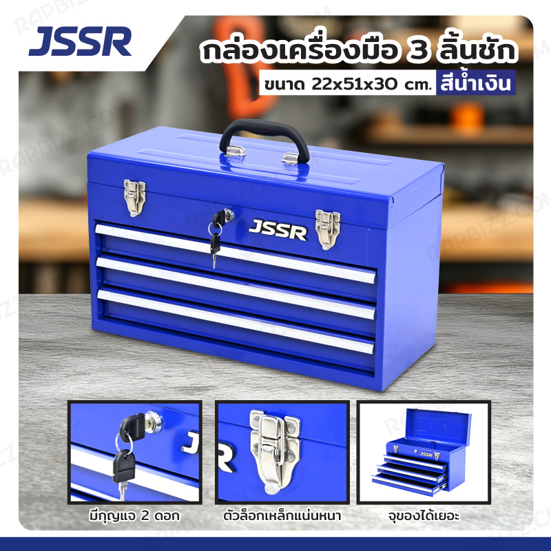JSSR กล่องเครื่องมือ 20 นิ้ว รุ่น 3 ลิ้นชัก เปิดบนได้ 22x51x30 ซม.สีน้ำเงิน JBUYNOW JSSR