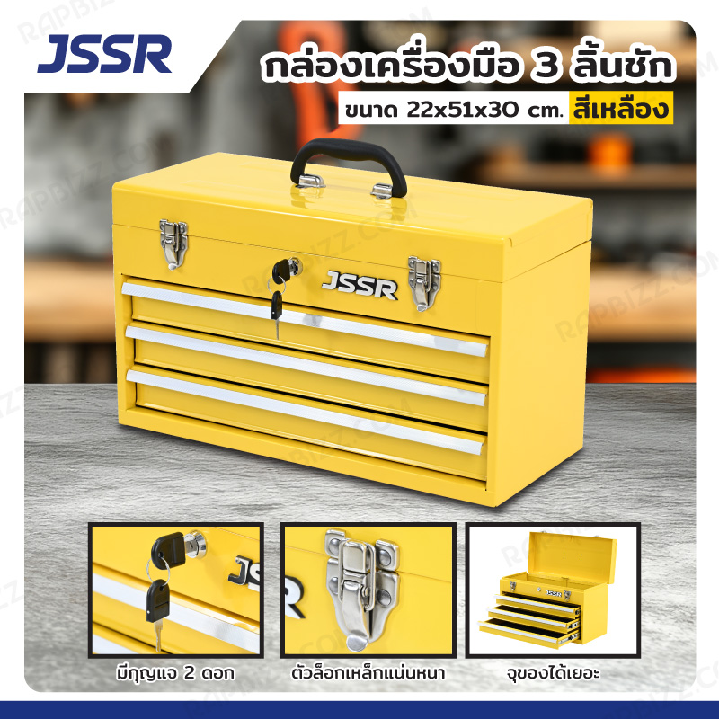 JSSR กล่องเครื่องมือ 20 นิ้ว รุ่น 3 ลิ้นชัก เปิดบนได้ 22x51x30 ซม.สีเหลือง ZR-TB001-YE