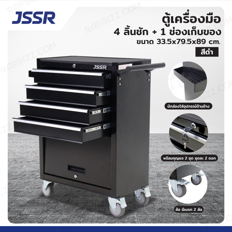 JSSR ตู้เครื่องมือ 4 ลิ้นชัก+1 ช่องเก็บของ 33.5x79.5x89 cm สีดำ JBUYNOW