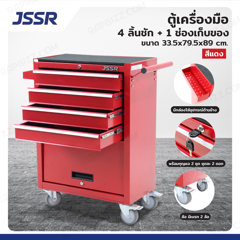 JSSR ตู้เครื่องมือ 4 ลิ้นชัก+1 ช่องเก็บของ 33.5x79.5x89 cm สีแดง JBUYNOW
