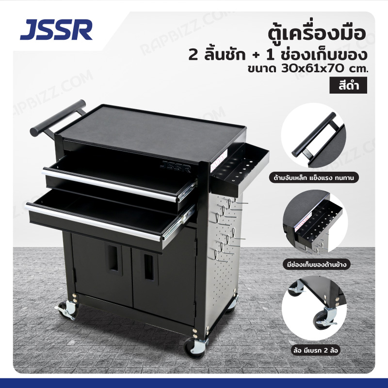 JSSR ตู้เครื่องมือ 2 ลิ้นชัก+ 1 ช่องเก็บของ 30x61x70 cm สีดำ TT-202BK