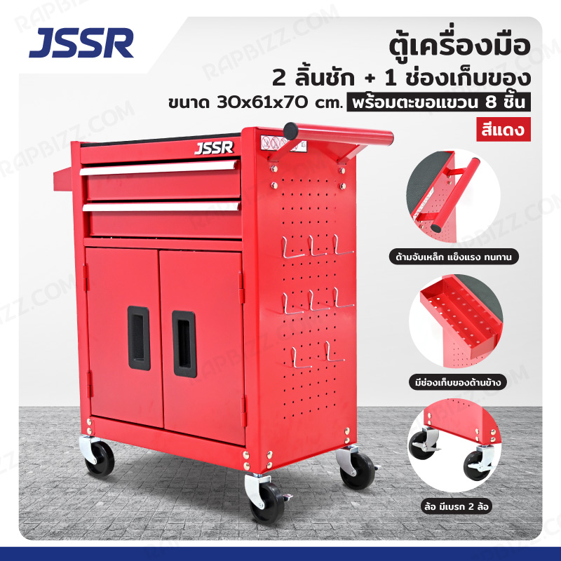 JSSR ตู้เครื่องมือ 2 ลิ้นชัก+ช่องเก็บของ 30x61x70 cm สีแดง TT-202RD
