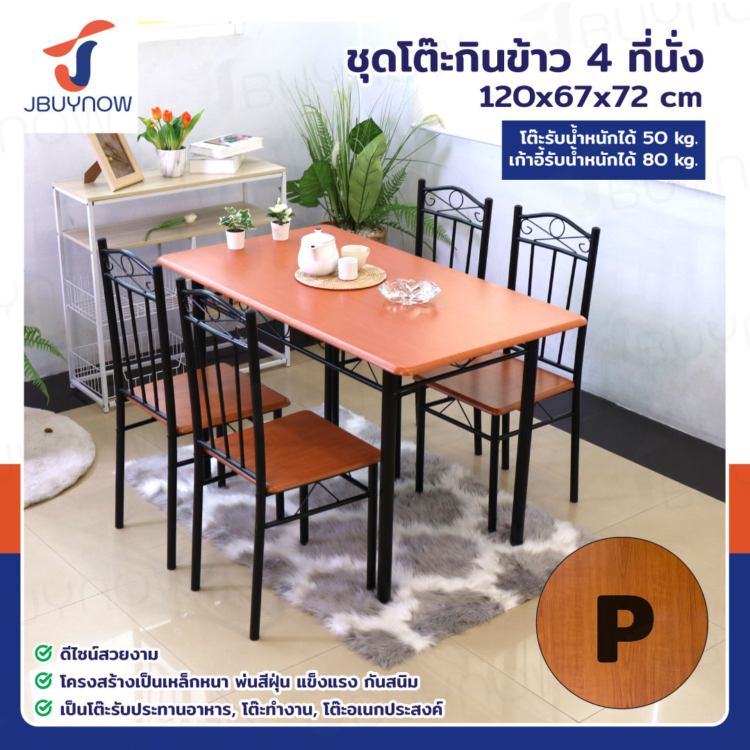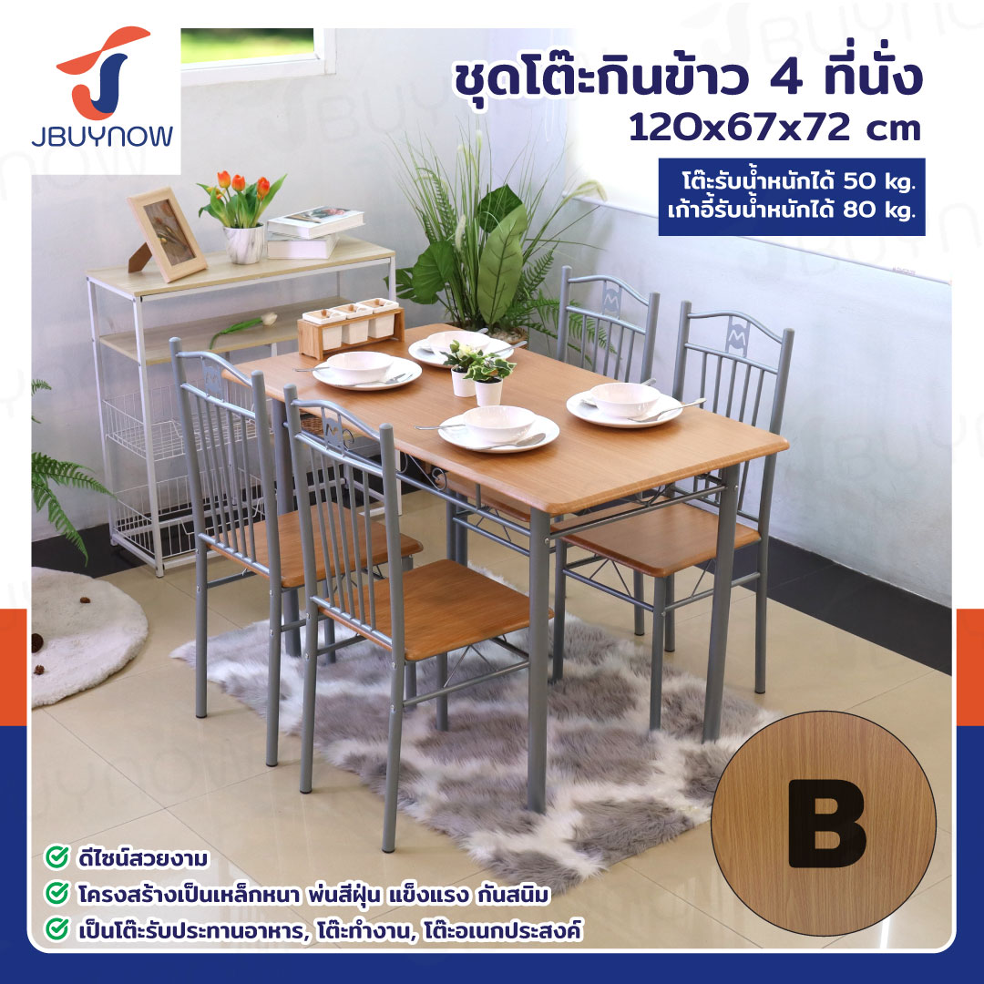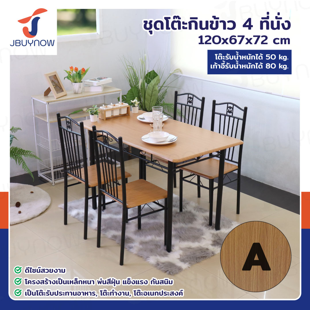 ชุดโต๊ะรับประทานอาหาร โต๊ะกินข้าว 4 ที่นั่ง 120x67x72 ซม. 1202-12B