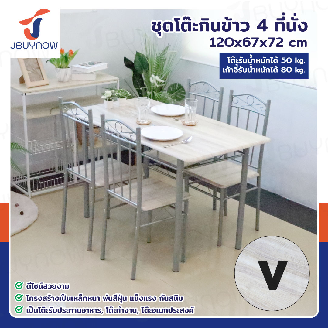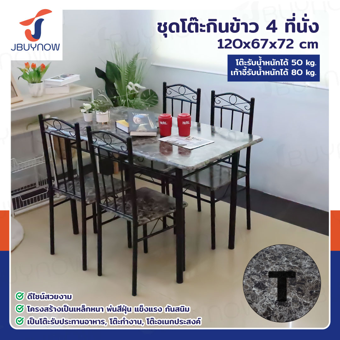 ชุดโต๊ะรับประทานอาหาร โต๊ะกินข้าว 4 ที่นั่ง 120x67x72 ซม. 1202-160