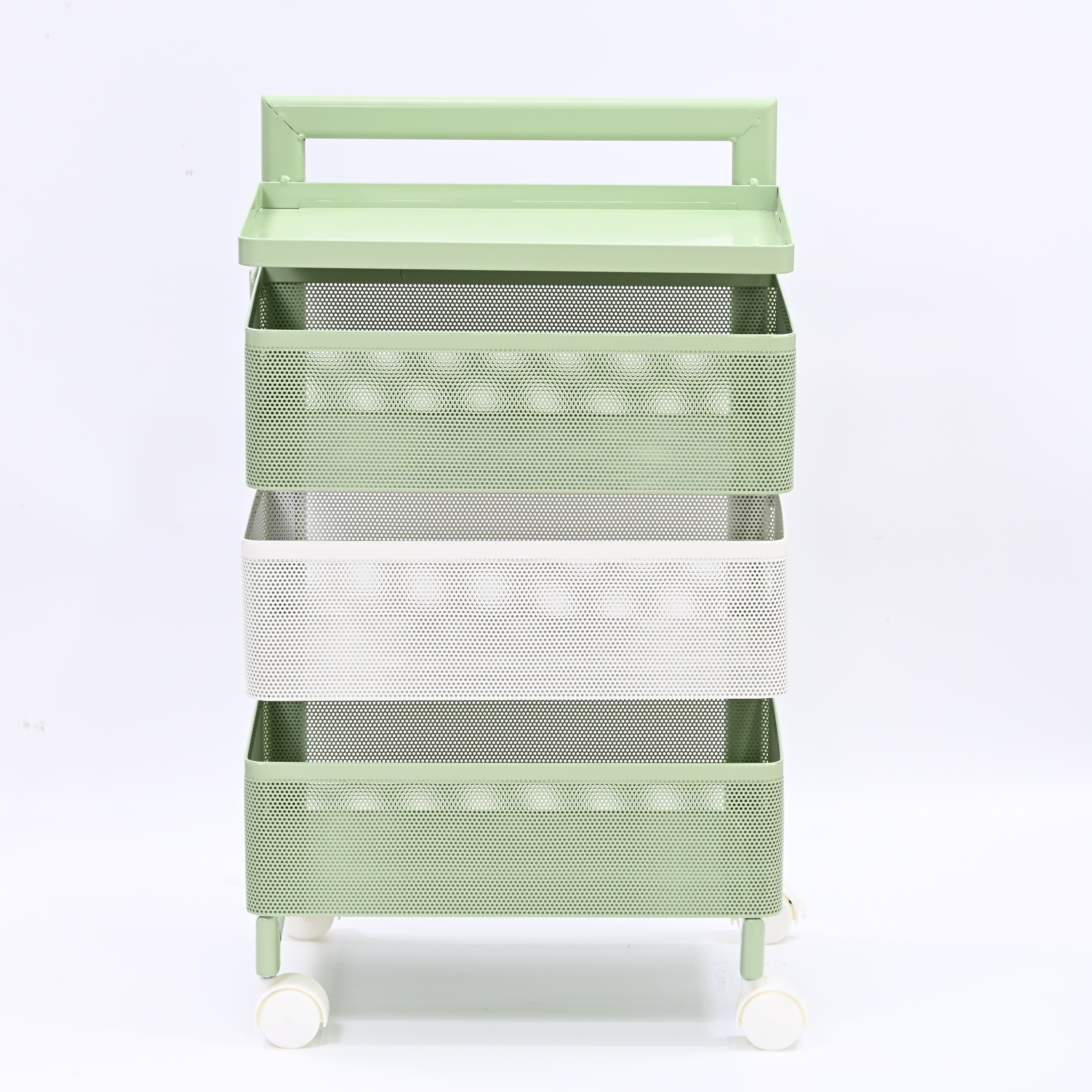 ชั้นวางของ 3 ชั้น อเนกประสงค์ มีล้อ 25x40x53 cm สีเขียว-ขาว