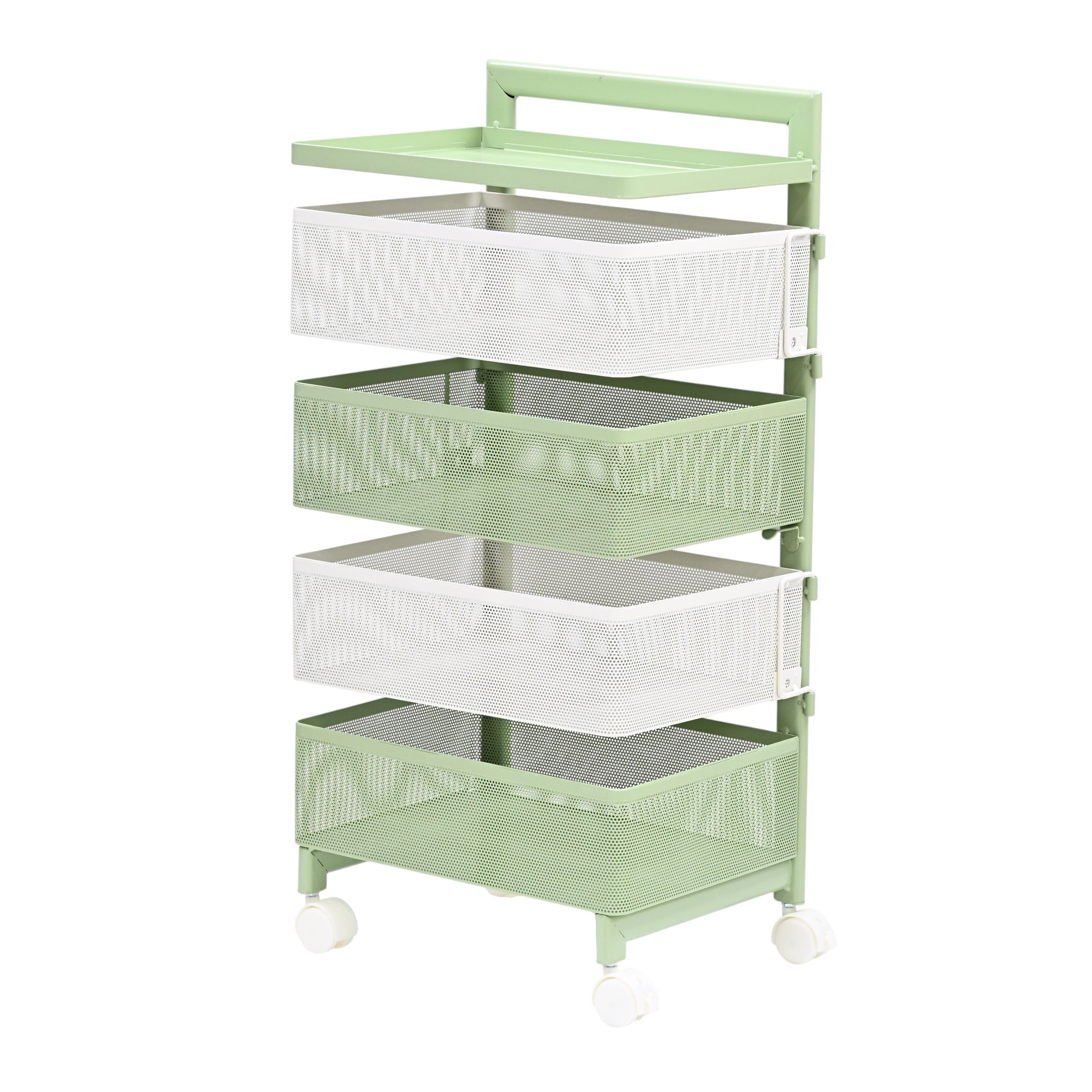 ชั้นวางของ 4 ชั้น อเนกประสงค์ มีล้อ 27x35x74 cm สีเขียว-ขาว