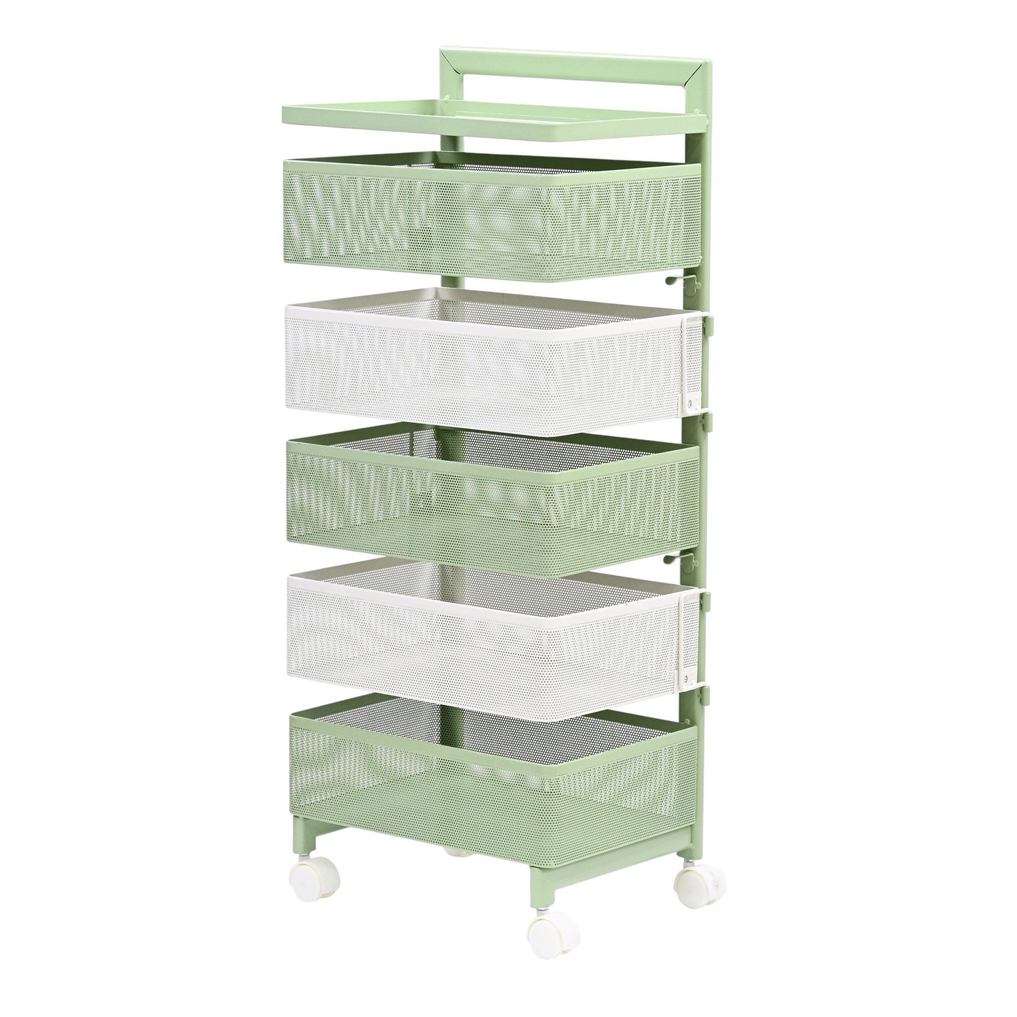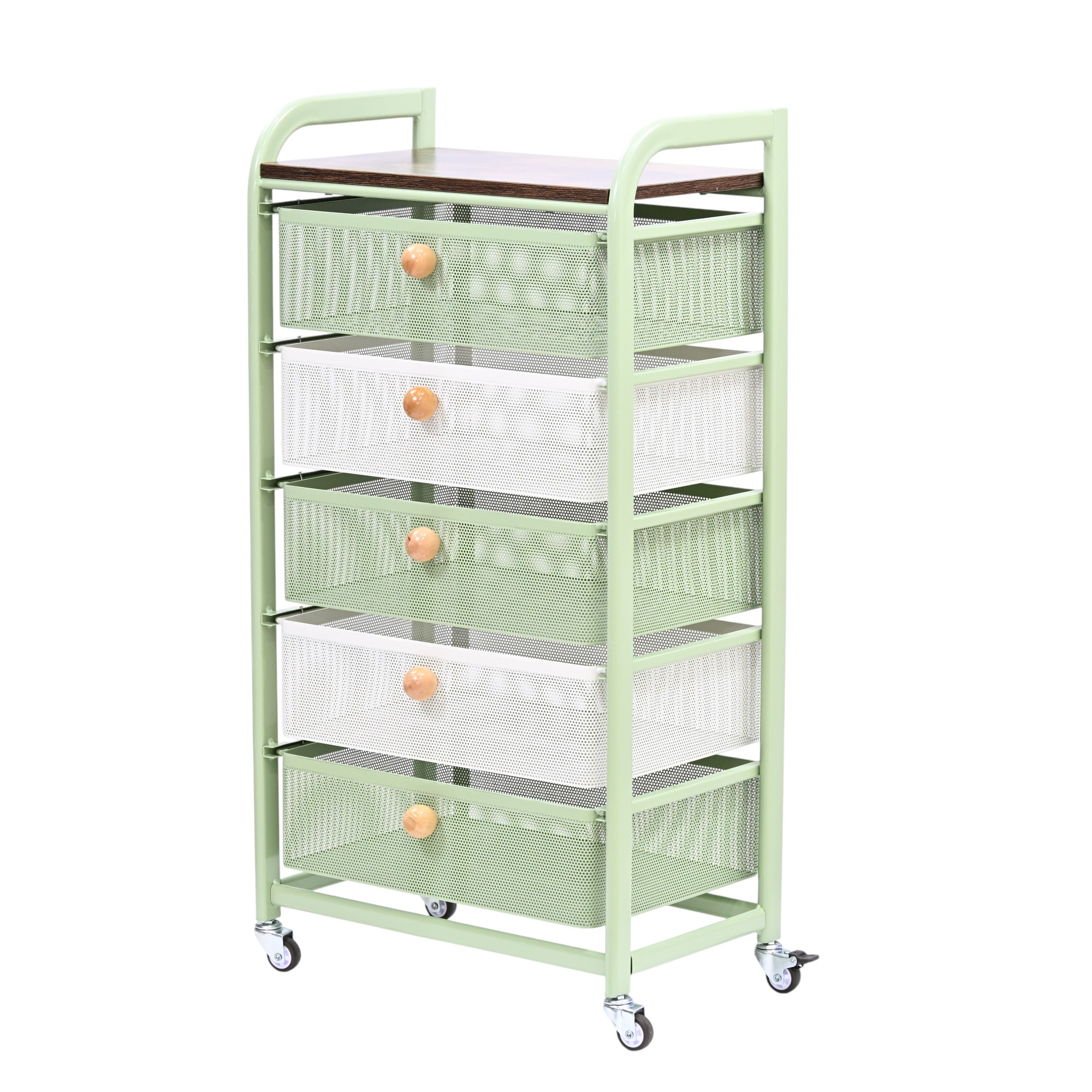ชั้นวางของ 5 ลิ้นชัก อเนกประสงค์ แบบลิ้นชัก มีล้อ 25x40x78 cm สีเขียว-ขาว