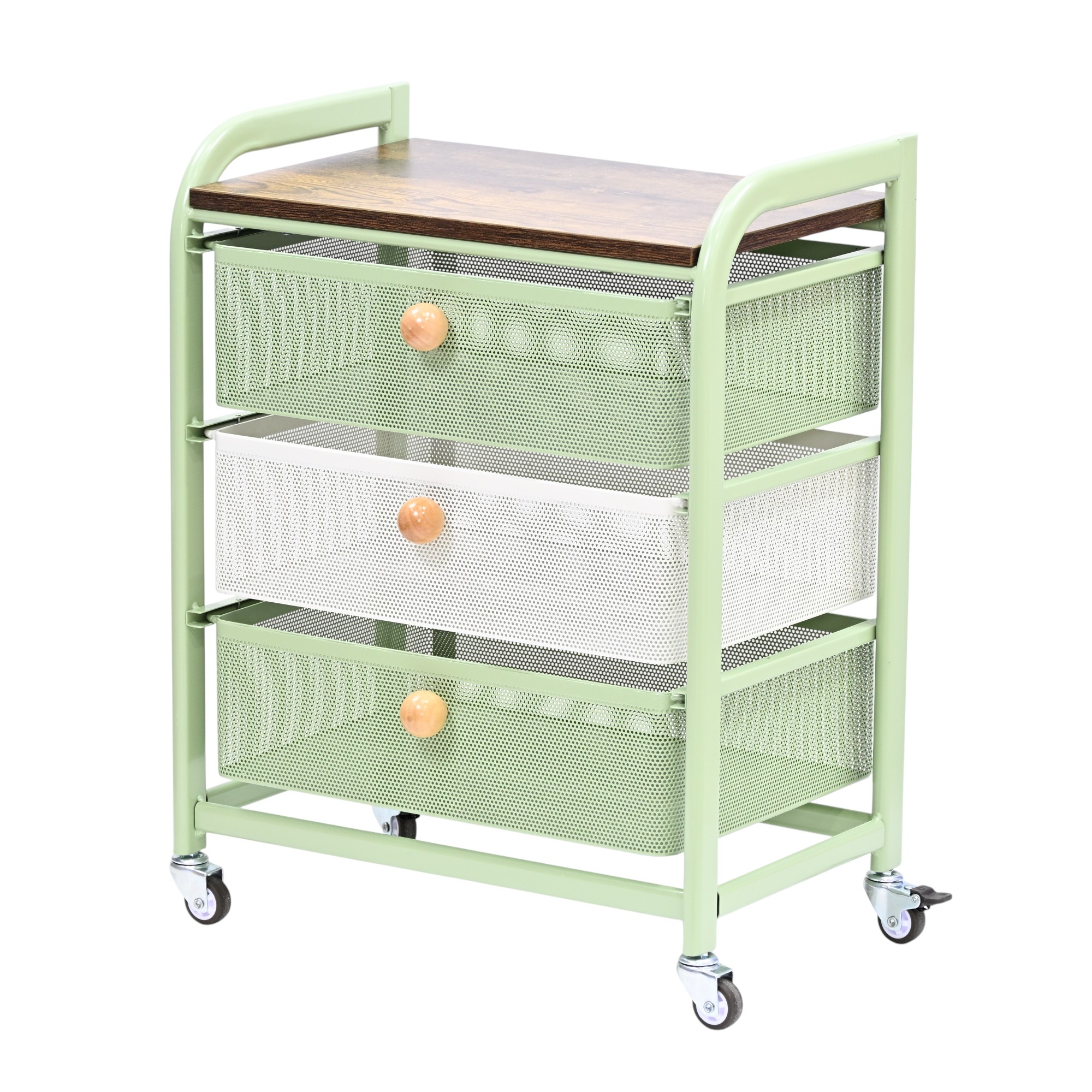 ชั้นวางของ 3 ลิ้นชัก อเนกประสงค์ มีล้อ 25x40x53 cm สีเขียว-ขาว