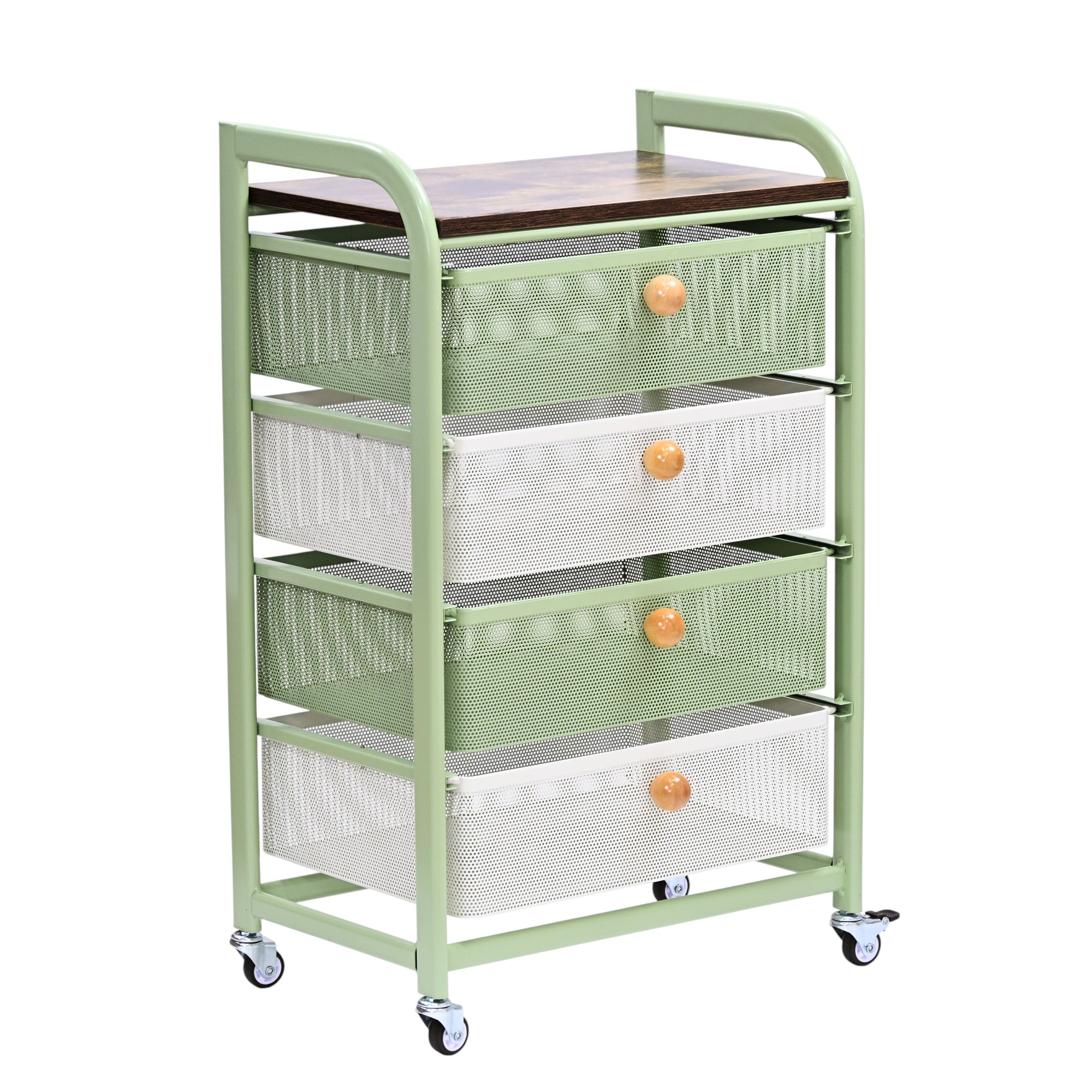 ชั้นวางของ 4 ลิ้นชัก อเนกประสงค์ แบบลิ้นชัก มีล้อ 25x40x65 cm สีเขียว-ขาว