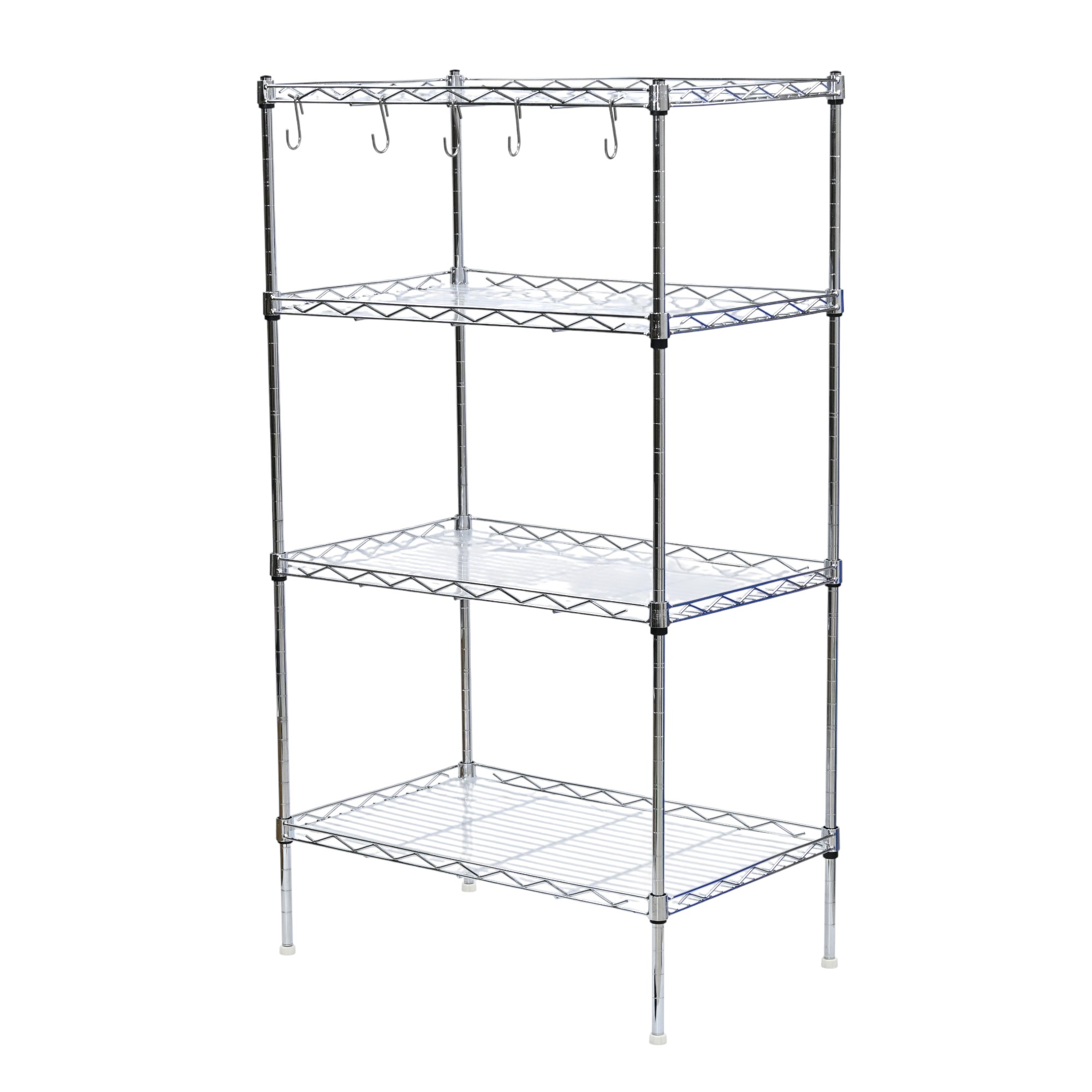 ชั้นวางของตะแกรง 4 ชั้น อเนกประสงค์ พร้อมตะขอแขวน 35x55x100 CM สีเงิน