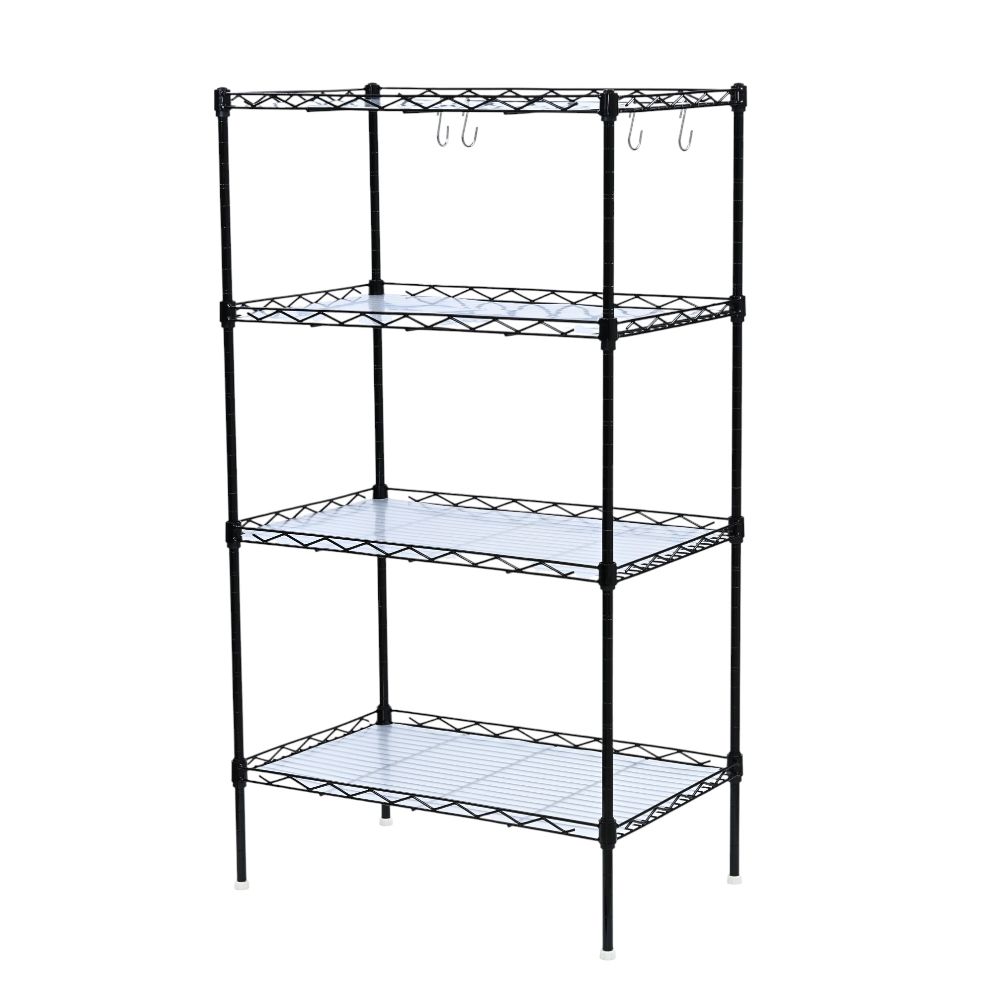 ชั้นวางของตะแกรง 4 ชั้น อเนกประสงค์ พร้อมตะขอแขวน 35x55x100 CM สีดำ